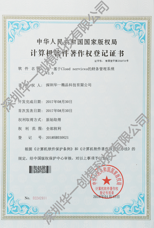 • 計(ji)算機(jī)軟件著作(zuò)權登記證-1